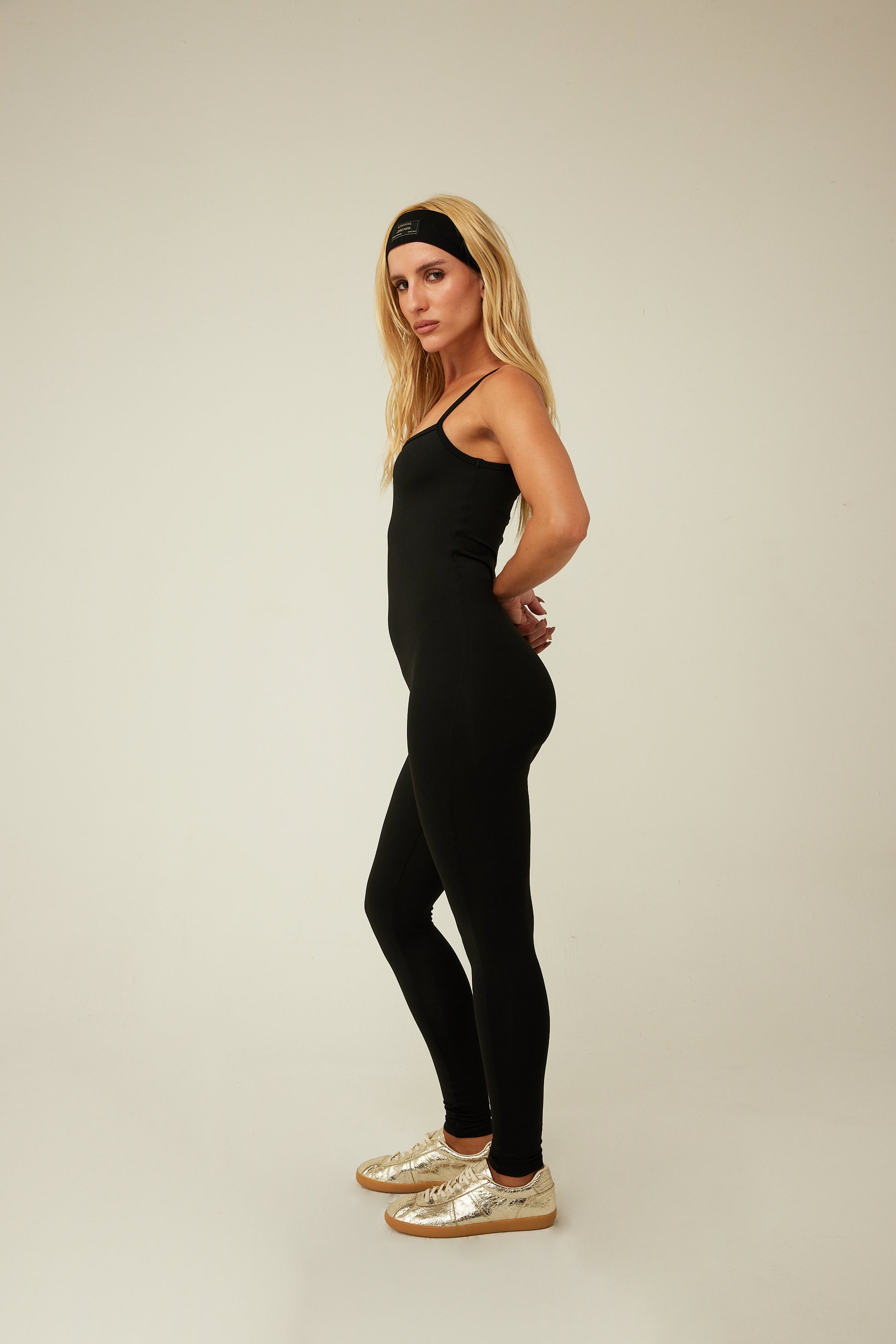 Macacão justo ao corpo, com design minimalista e contemporâneo. Possui alças finas e decote reto, valorizando o colo de forma clean e sofisticada. A modelagem segunda pele acompanha a silhueta com conforto, criando um visual alongado e moderno.